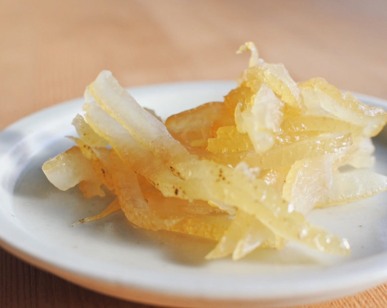 日本のかんきつ名産地である地域の瀬戸内でとれた希少なレモンを、手作業でピールにし糖漬けにしたものです。