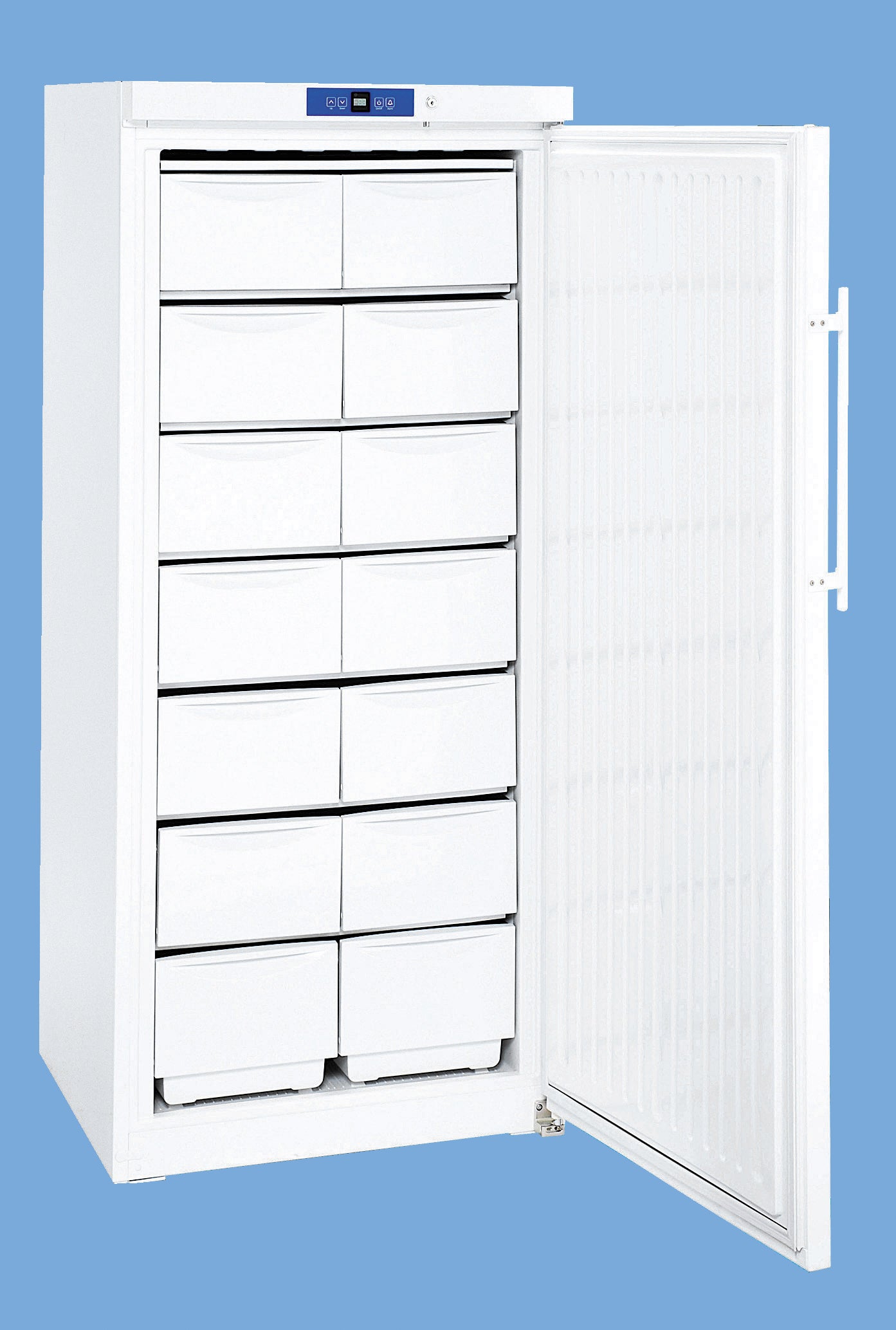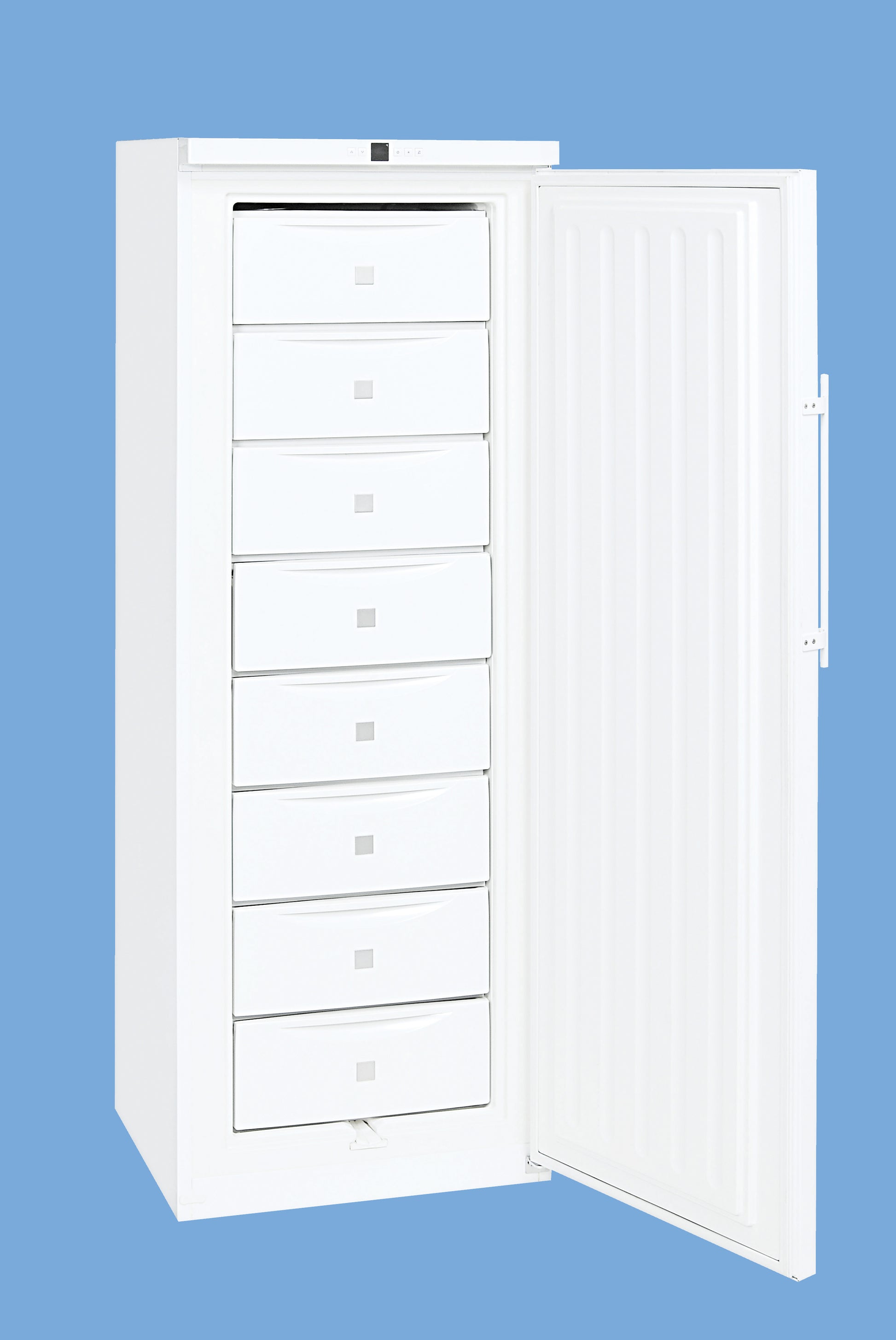 庫内には強化プラスチック製の引き出し式収納庫を各棚に装備し、冷凍パン生地や中華食材、給食の検食保存など、分別保管にも最適。スリムでコンパクトな縦型設計のため、省スペースにも対応します。